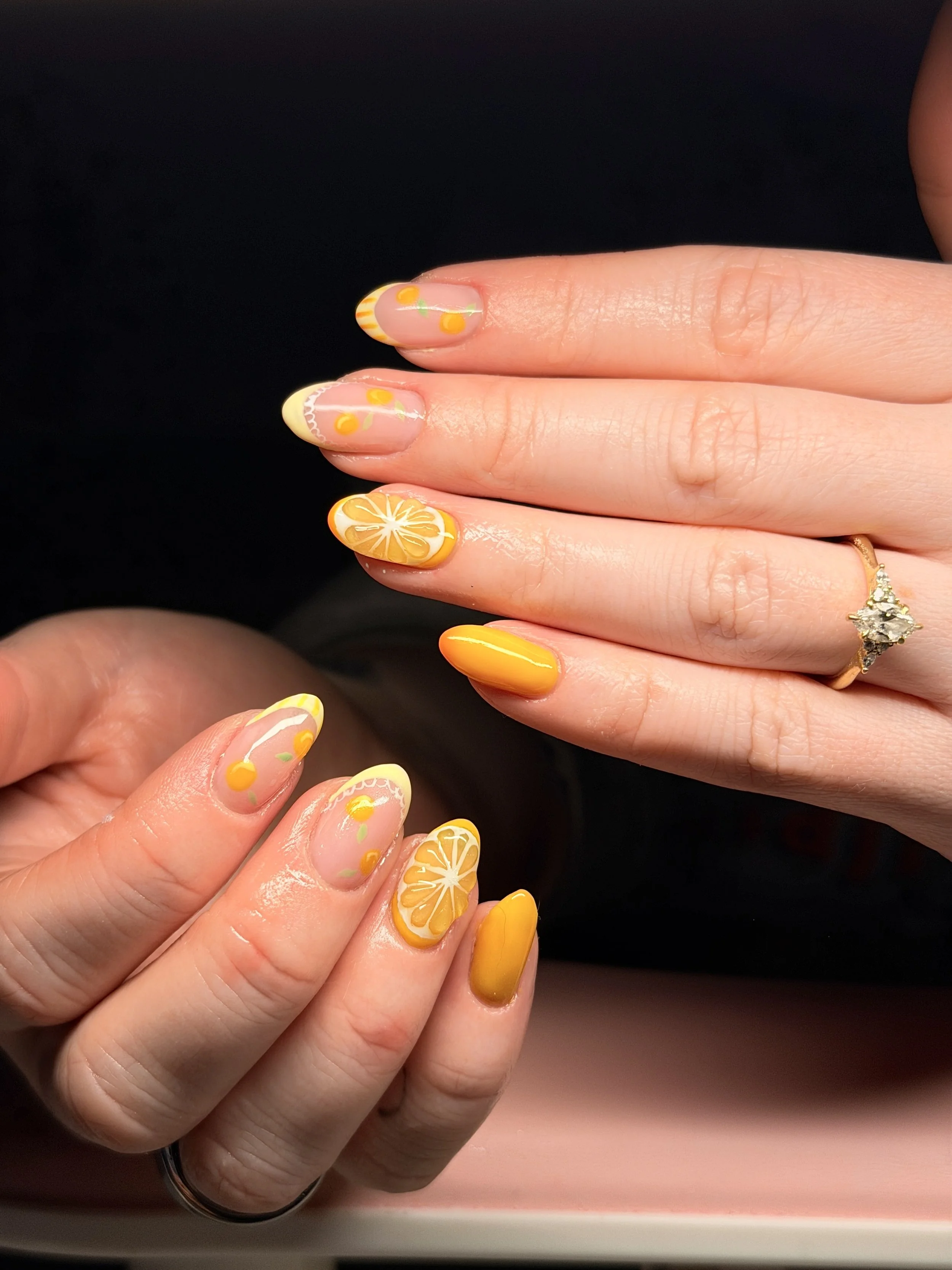 Gel Overlay is a thicker more durable version of gel polish. The structured Gel Overlay is for keeping your natural nail strong and helping along nail growth. This service includes cuticle trimming, the structured gel overlay, and a hand massage at the end of the service. This service takes 1hr 45min - 2hrs depending on the nail length and amount of structure needed. Nail art not included but very encouraged! These will last longer than your run of the mill Gel Polish manicure so its fun to add something special to the set.